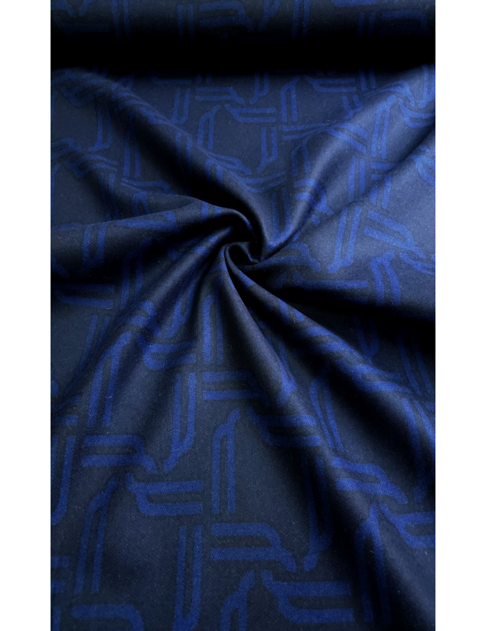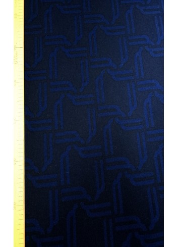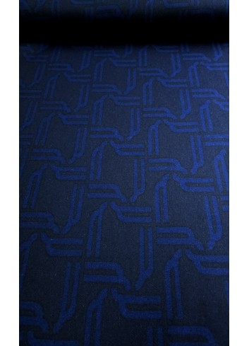 Luxusní italská vlna kabátovka , střední gramáže v černé barvě s modrým monogramovým vzorem ve stylu módní značka BURBERRY. Pevná, ale poddajná látka, příjemná na dotek, měkoučká a teplá. Vyrobeno v Itálii.