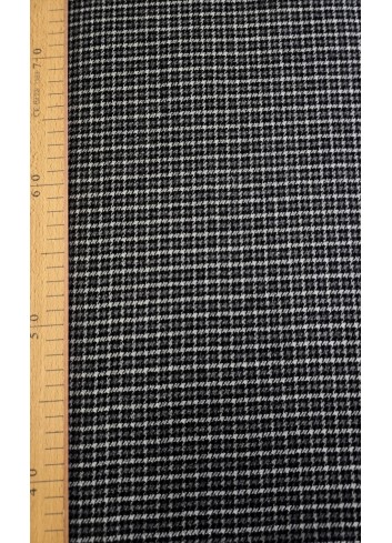 Drobné vlněné káro v černo šedém provedení, střední gramáže, příjemné a hřejivé na nošení, pevné, mírně elastické, velice kvalitní vlna. Vyrobeno v Itálii.