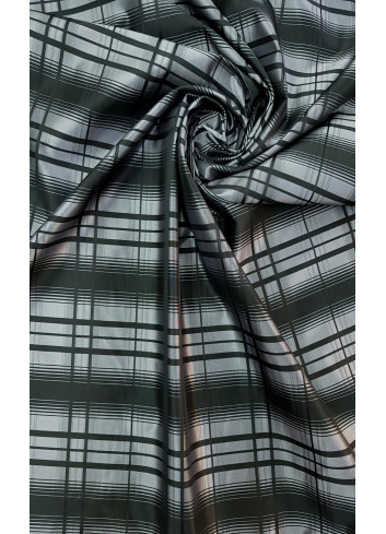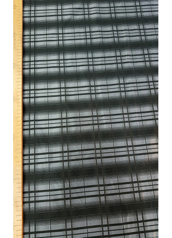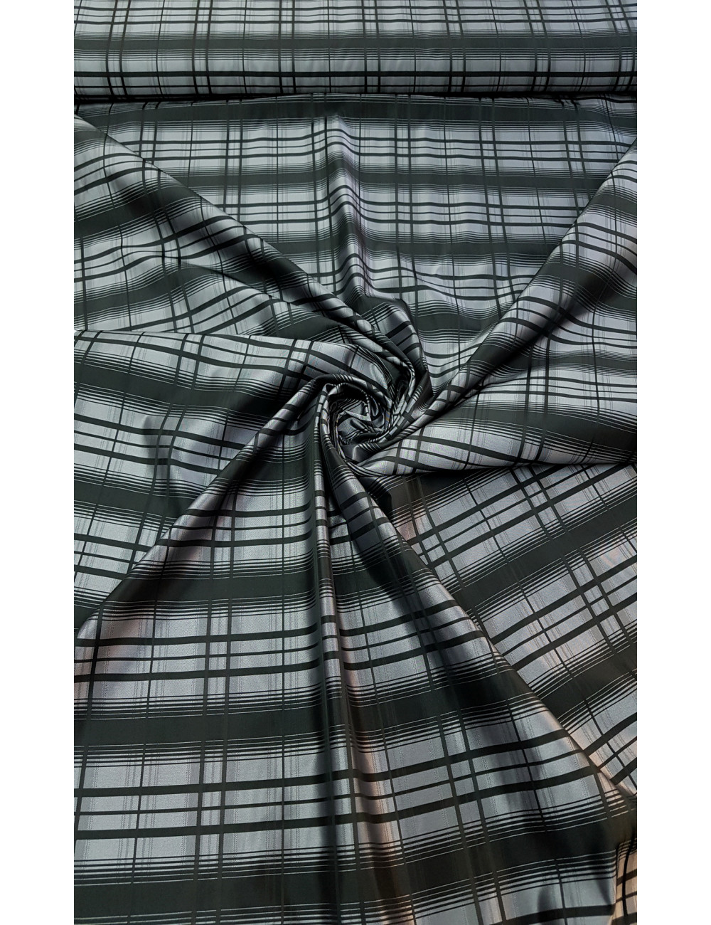 Taft střední gramáže se vzorem šedo černého kára a paměťovým efektem, pevnější s mírným leskem, velice kvalitní.