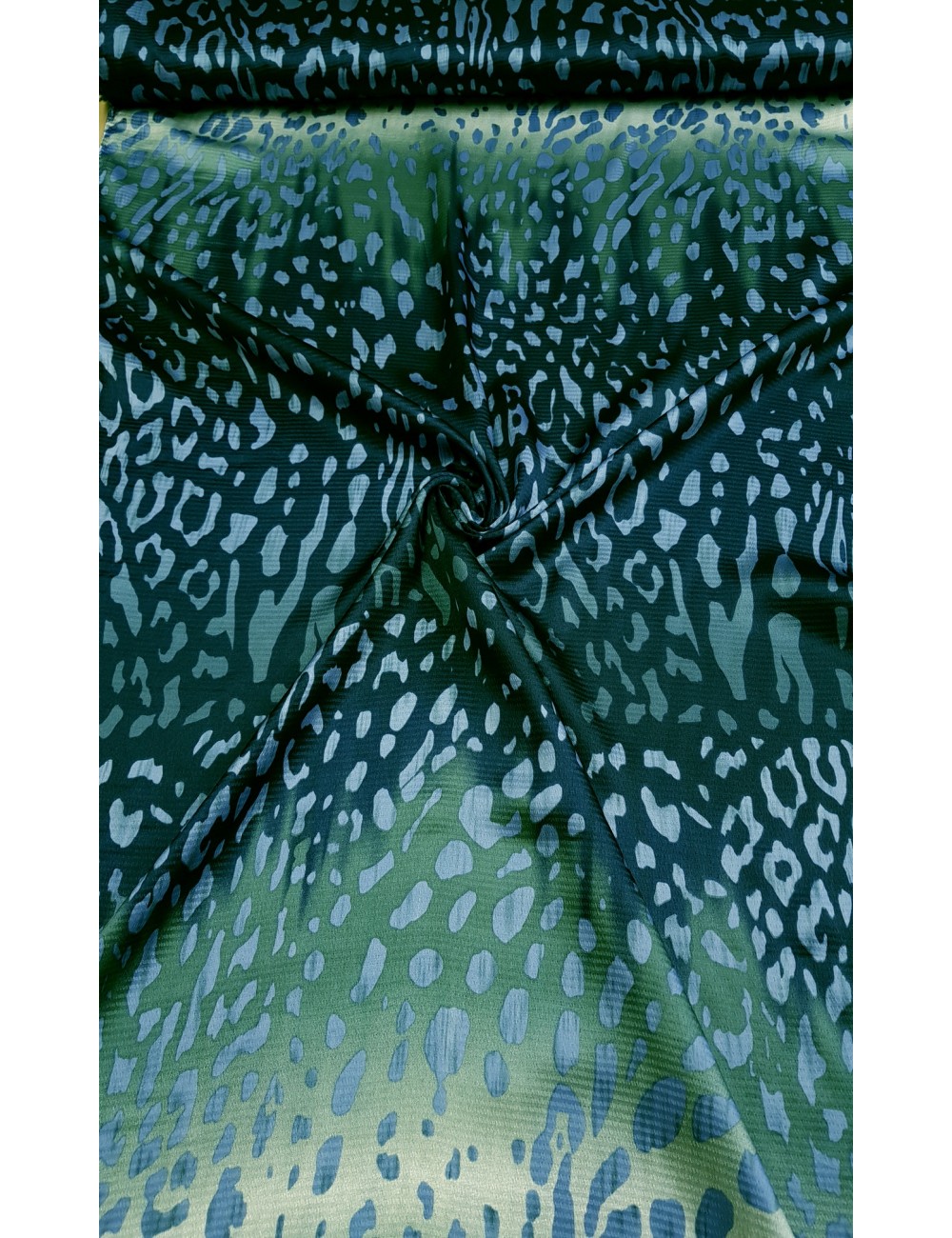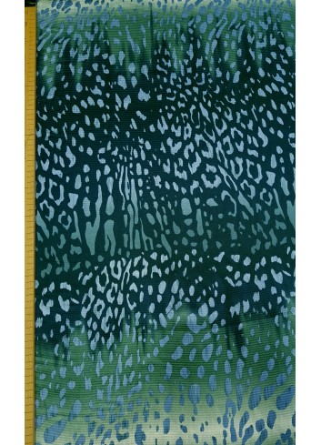 Satén se zvířecím vzorem v šedo tmavě modrém duhovaném provedení a strukturovaným drobným proužkem, lehounký, příjemný, splývavý, zajímavé provedení, vynikající poměr ceny a kvality.