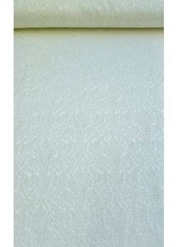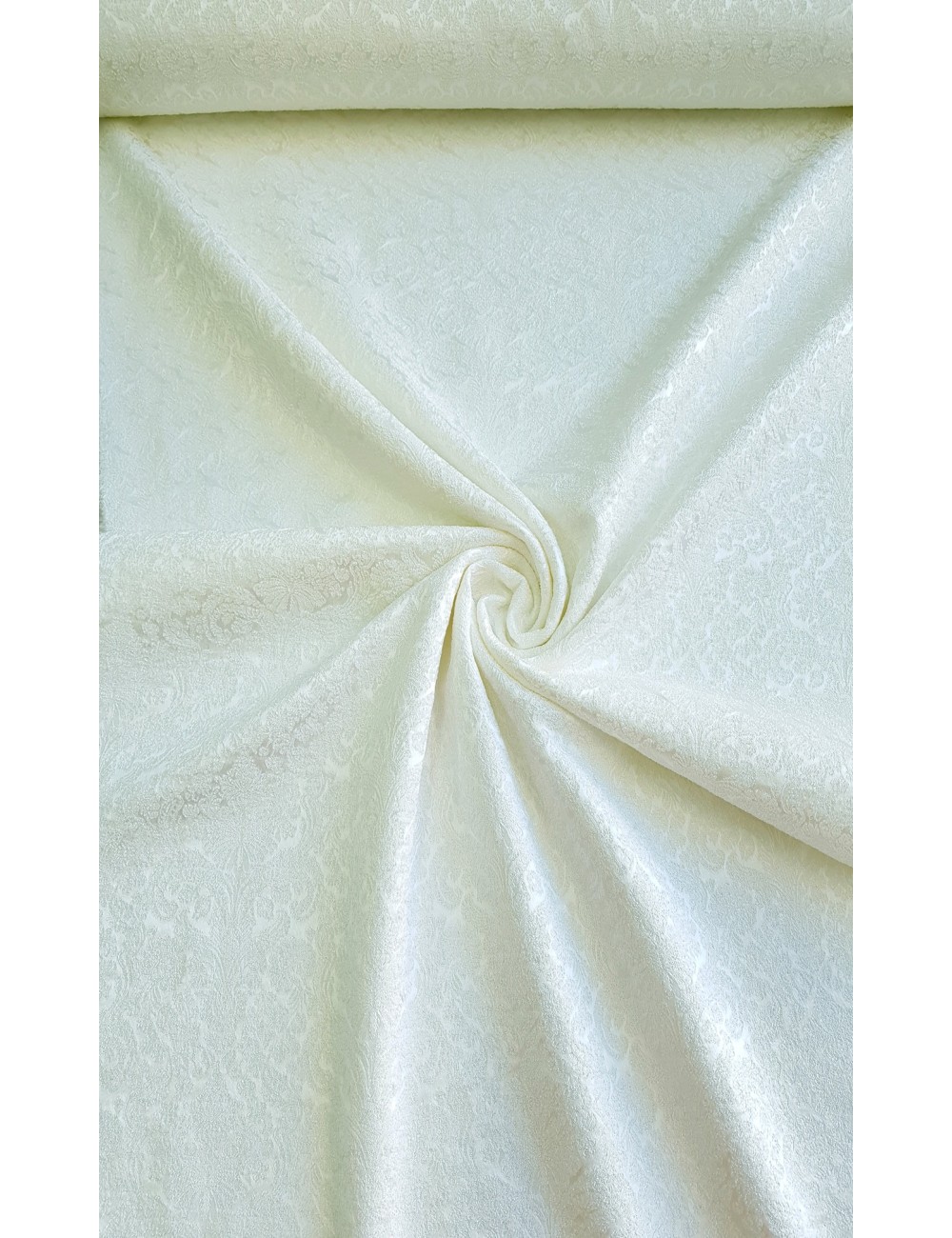 Krásný italský žakár v barvě lomená bílá mírně elastický s podílem přírodního hedvábí a plastickým vetkávaným vzorem, příjemný na dotek, luxusního reprezentativního vzhledu. Made in Italy.
