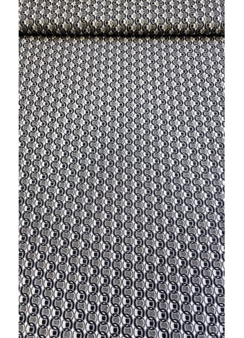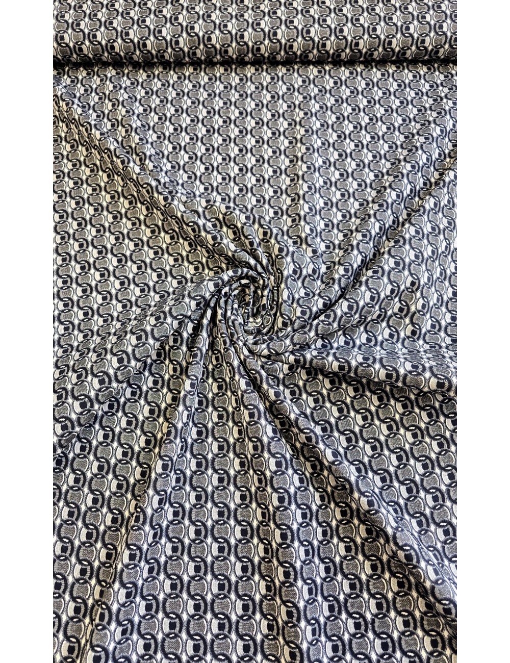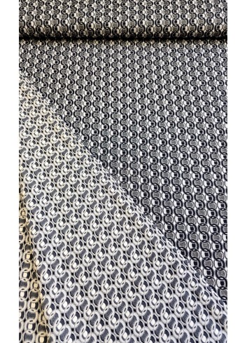 Italský žakár střední gramáže s černobílým geometrickým vzorem ve stylu módní značky BURBERRY, převážně z přírodního materiálu, možno využít oboustranně. Velice příjemný na dotek, mírně elastický, poddajný. Vyrobeno v Itálii, top kvalita.