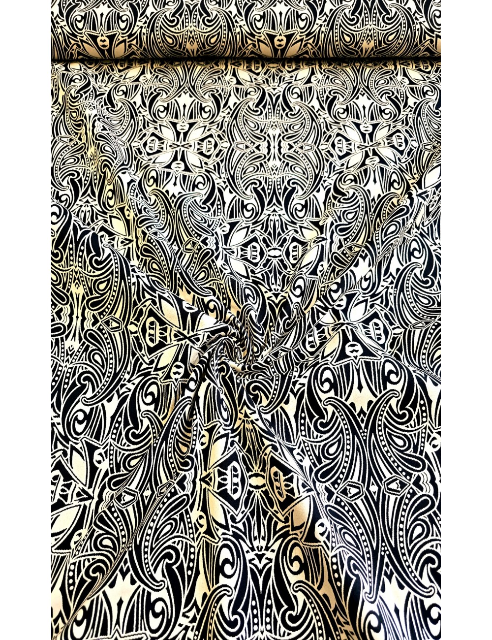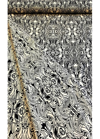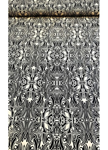 Italský žakár střední gramáže s černobílým geometrickým vzorem, převážně z přírodního materiálu, možno využít oboustranně. Velice příjemný na dotek, mírně elastický, poddajný. Vyrobeno v Itálii, top kvalita.