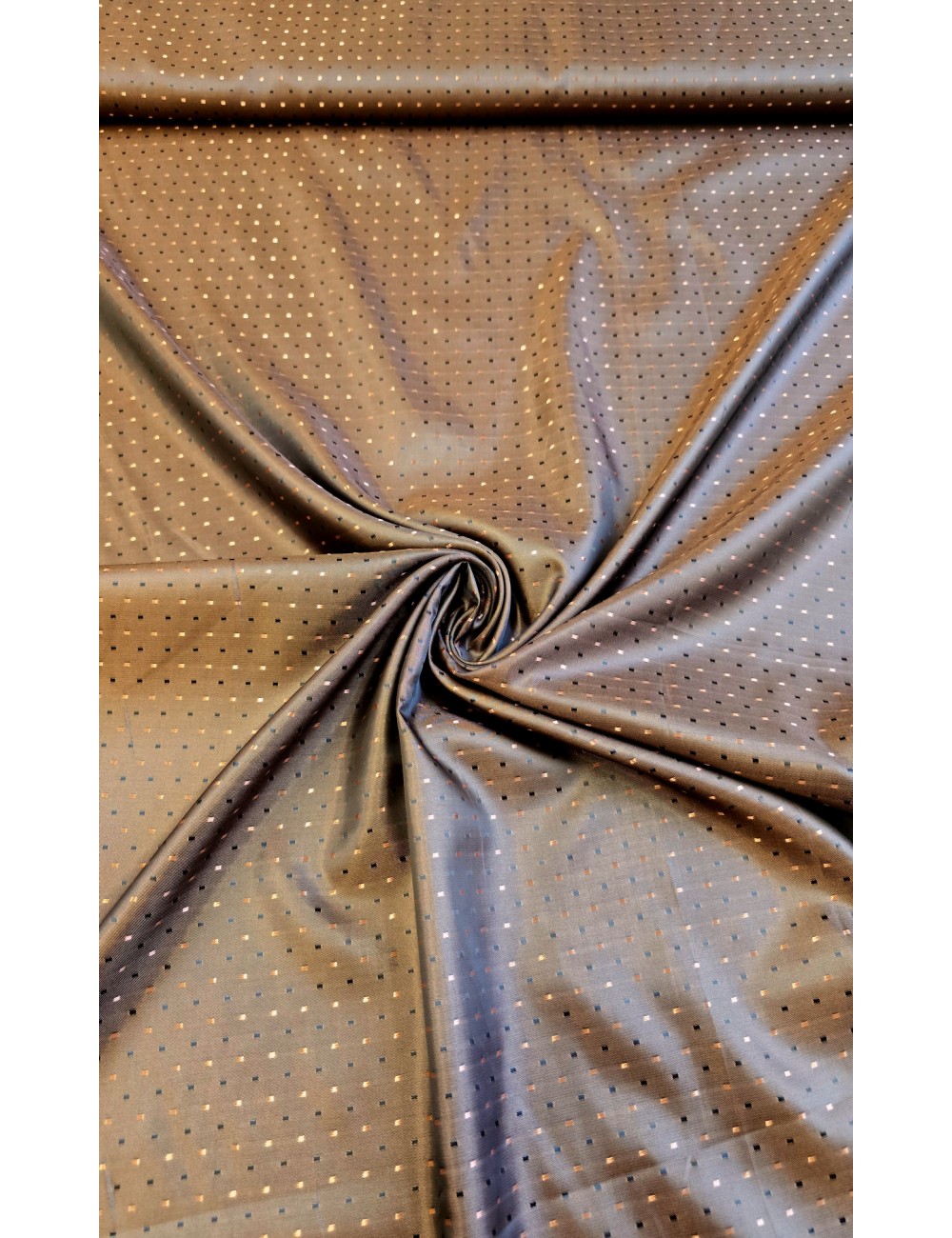Designová podšívka se vzorem droboučkých puntíčků v zlatavě hnědé barvě, možno využít oboustranně, rubová strana je o tón světlejší. Velice elegantní.