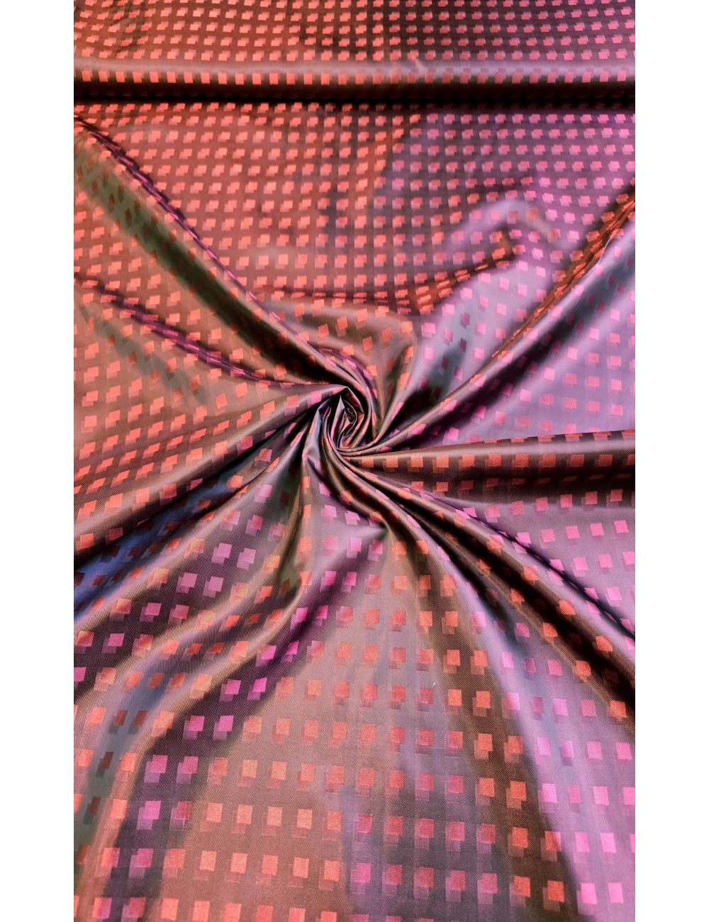 Designová podšívka s pravidelným geometrickým vzorem v bordó barvě, možno využít oboustranně, rubová strana je o tón světlejší. Velice elegantní.